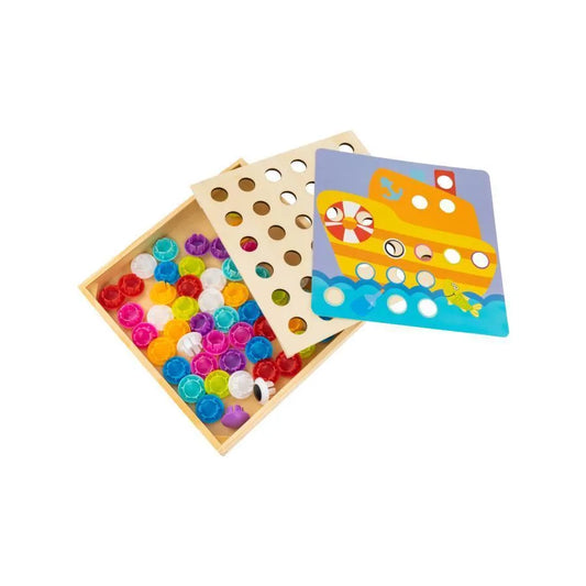 Stoc epuizatBežná cena€19,95Znížená cena €5,95Stoc epuizatHra typu puzzle s 11 kartami a 50 viacfarebnými, drevené, plastové a kartónové kusy