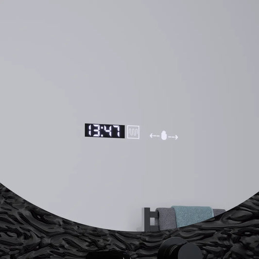 in stocBežná cena Znížená cena €146,95LED okrúhle zrkadlo, 100 cm, Celeste Majesté Noir MotionGlow Marcello, Demister System, Hodiny & Teplomer, Stmievateľné
