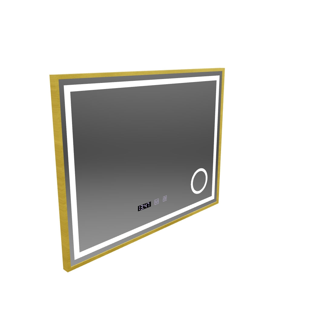CLARUS Touch LED zrkadlový odhmlievací systém, hodiny a teplota Kozmetická lupa s brúseným zlatým rámom 80 x 60 cm