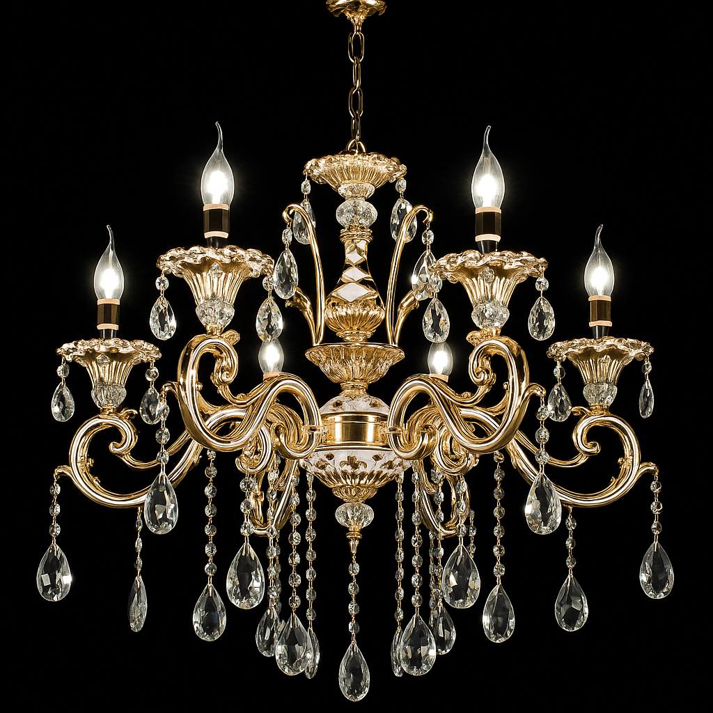 Poskytuje eleganciu vašej izbe prostredníctvom tohto špeciálneho lustra. Svetelné zdroje sú obklopené ozdobnými vláknami s pôsobivým počtom kryštálov. Akonáhle je luster rozsvietený, odraz svetla cez starostlivo umiestnené kryštály vytvára jedinečný estetický mimoriadny zdroj.