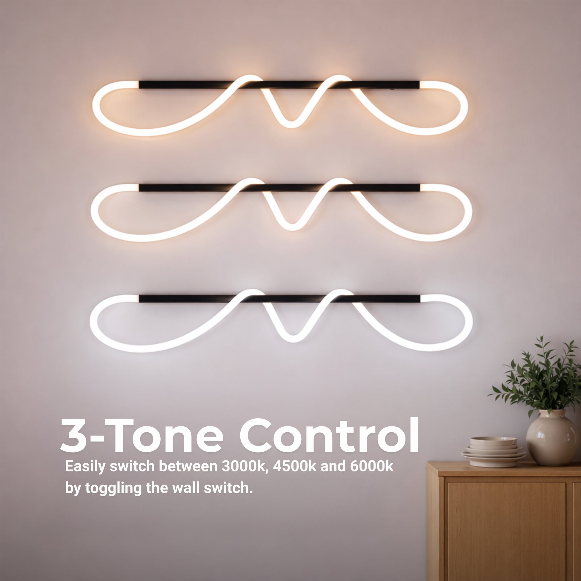 So silou 24 W a tri voliteľné teploty farieb – 3000K, 4000K, 6000K – luster ponúka všestrannosť a vizuálny komfort, okamžite prispôsobuje atmosféru v závislosti od dennej doby. Osvetlenie je energeticky účinné a rozptyl svetla je mäkký a príjemný.