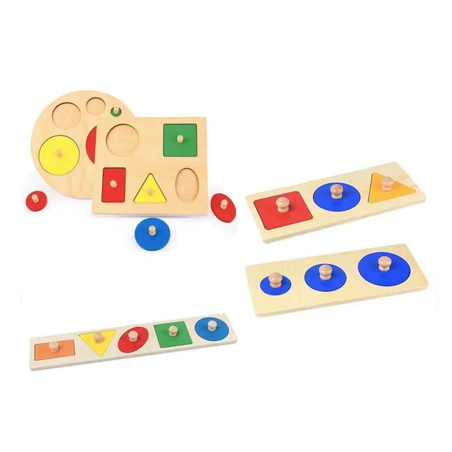 Hra typu viacfarebného panela s geometrickými tvarmi, 6 kusov, drevo