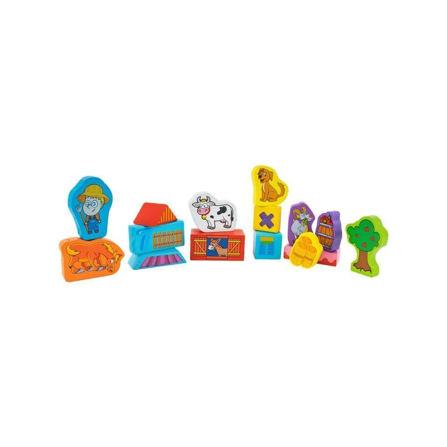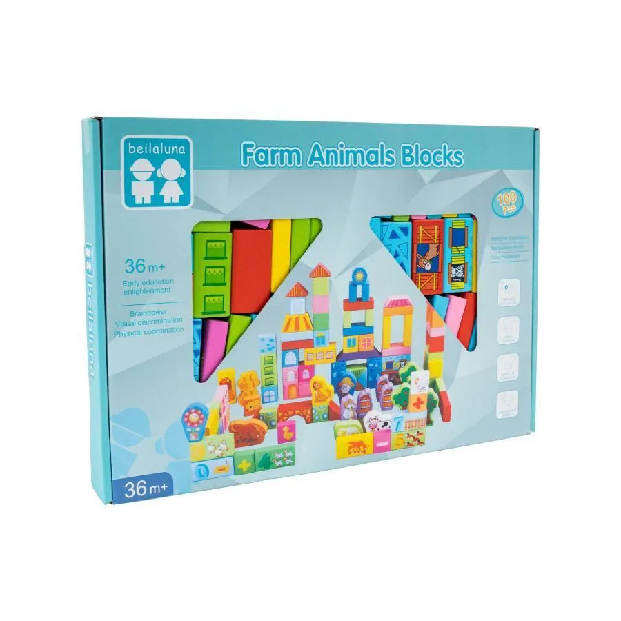 Kocky hier so zvieratami z stavebnej farmy, 100 kusov, drevo