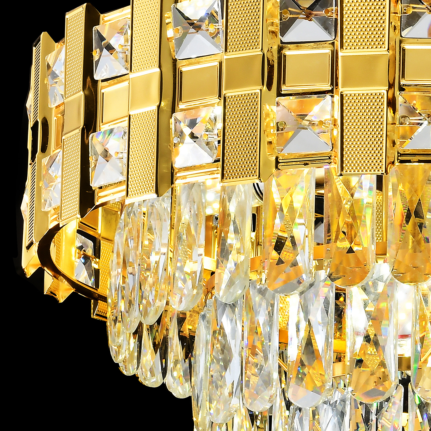 Kombinácia lesklej zlatej povrchovej úpravy a starostlivo fazetovaných kryštálov vytvára šou svetla a odleskov, ktoré podčiarkujú rafinovanosť každého detailu. Nastaviteľná výška dodáva všestrannosť a umožňuje harmonickú integráciu do rôznych typov usporiadania.
