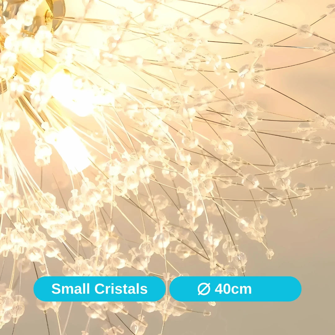 - Vizuálna kvalita: Kombinácia kryštálov a zlatej povrchovej úpravy dodáva lustru pocit kvality a zmysel pre detail.