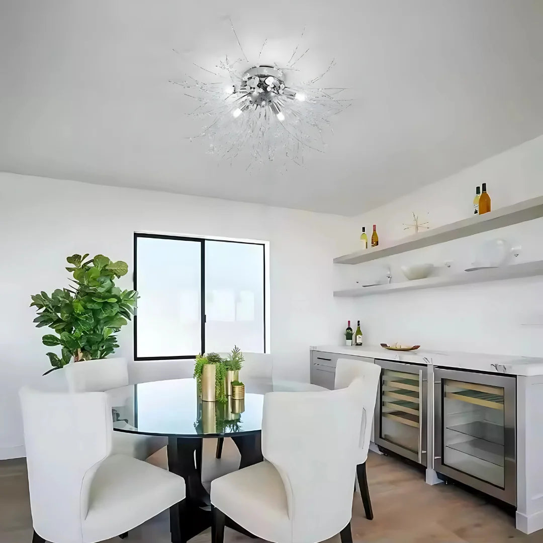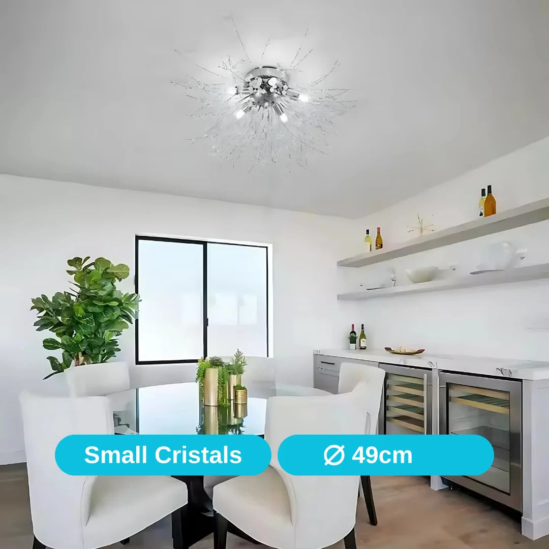 - Lesklý strieborný povrch: Lesklá strieborná farba kovovej konštrukcie dodáva nádych modernosti a elegancie, odráža svetlo a umocňuje iskru kryštálov.