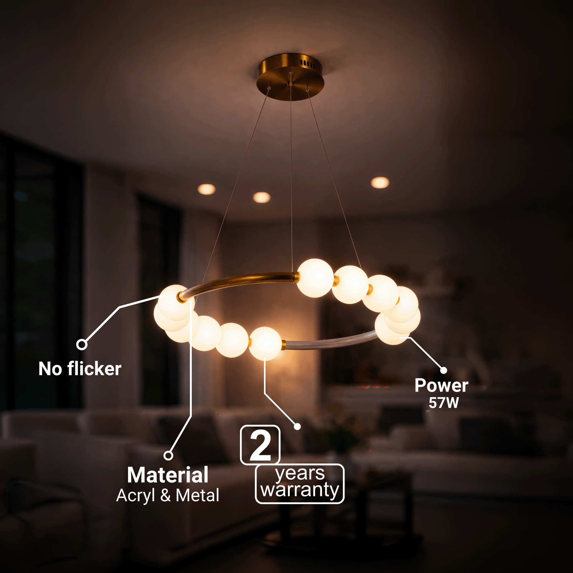 Nova 57W akrylový LED závesný luster s diaľkovým ovládaním, stmievateľný, 3000K/4000K/6000K, zlato, kov a akryl