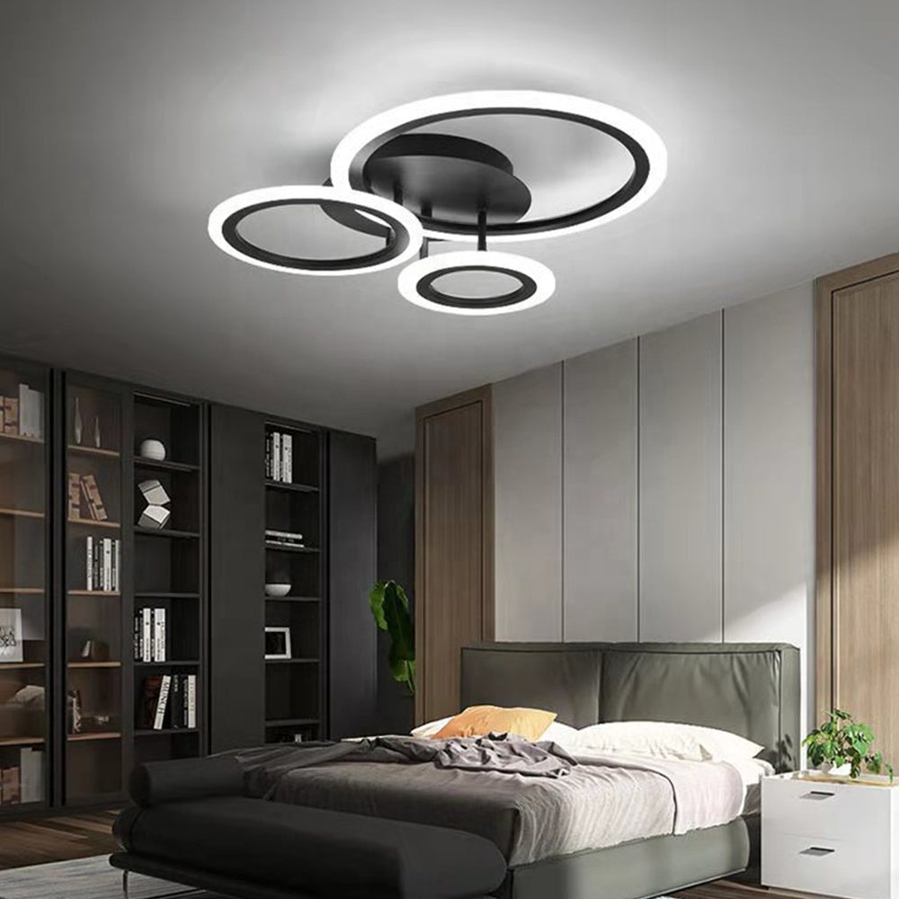 Čierna povrchová úprava zvýrazňuje moderné línie kruhového dizajnu a dodáva miestnosti nádych elegancie a striedmosti. S výkonom 41W je ideálny na osvetlenie menších obývačiek, spální alebo iných stredne veľkých miestností.