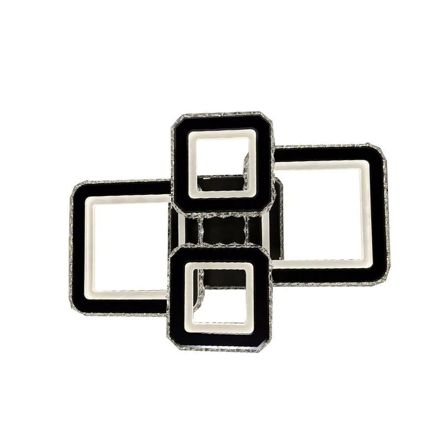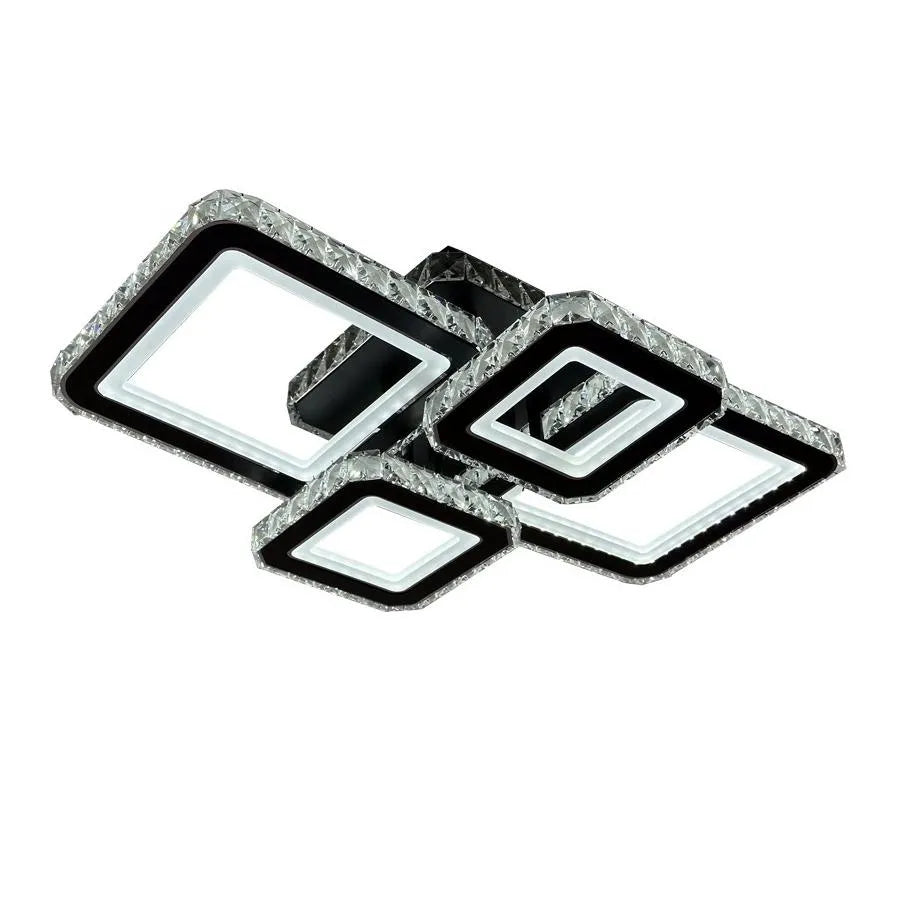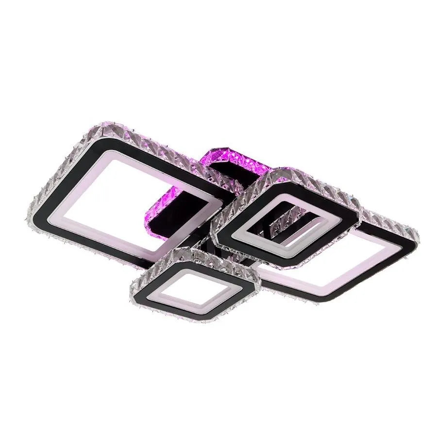 LED luster s diaľkovým ovládaním a krištáľom BLAKELY RGB 154W, 4 štvorce, studené/teplé/neutrálne svetlo, stmievateľné, čierny