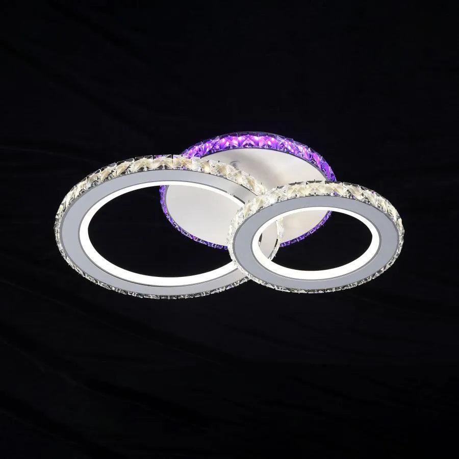 LED luster s diaľkovým ovládaním a krištáľom NOVA ROTONDA RGB 43W, 2 kruhy, studené/teplé/neutrálne svetlo, stmievateľné, biela