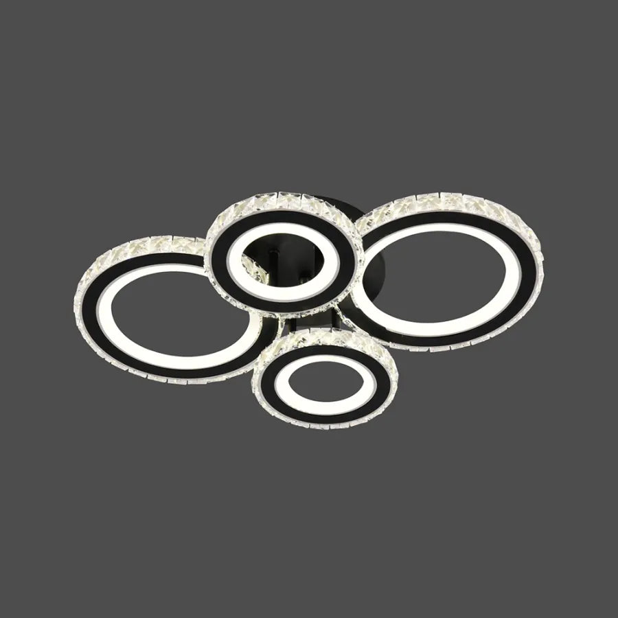 LED luster s diaľkovým ovládaním a krištáľom NOVA ROTONDA RGB 68W, 4 kruhy, studené/teplé/neutrálne svetlo, stmievateľné, čierny