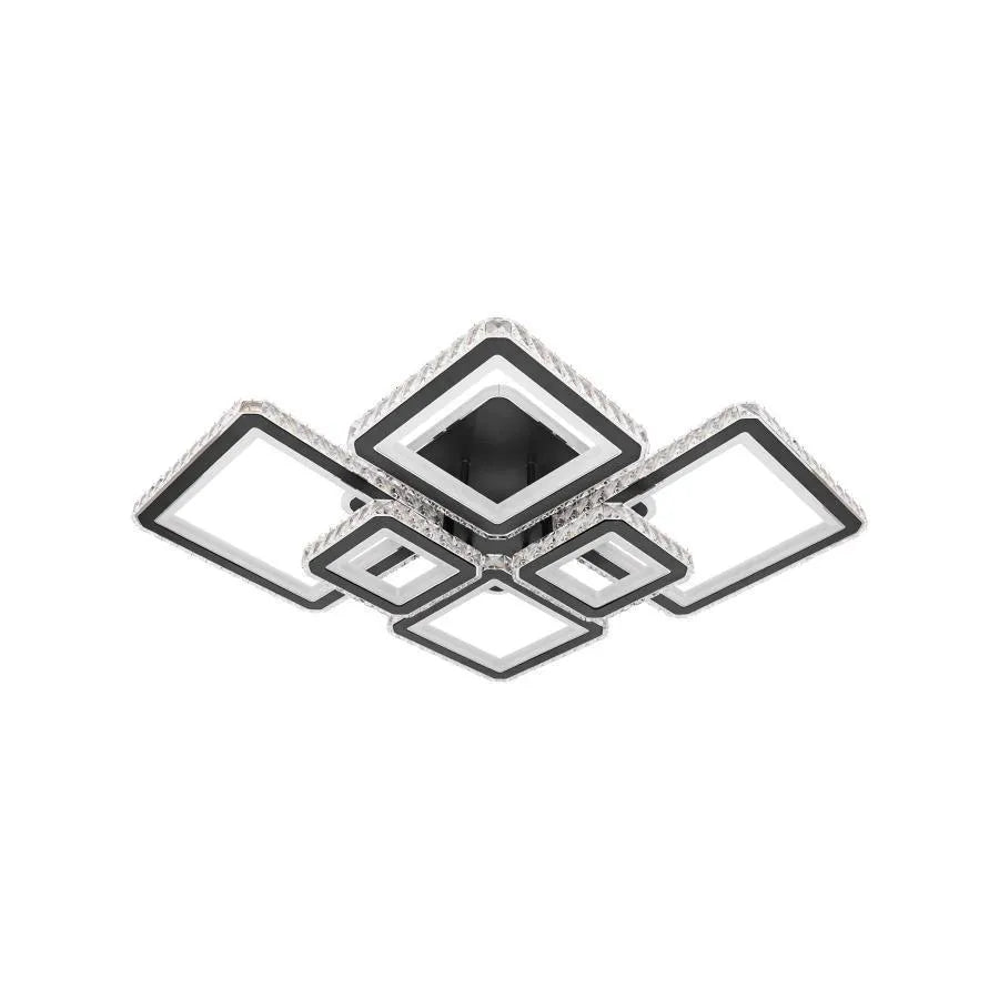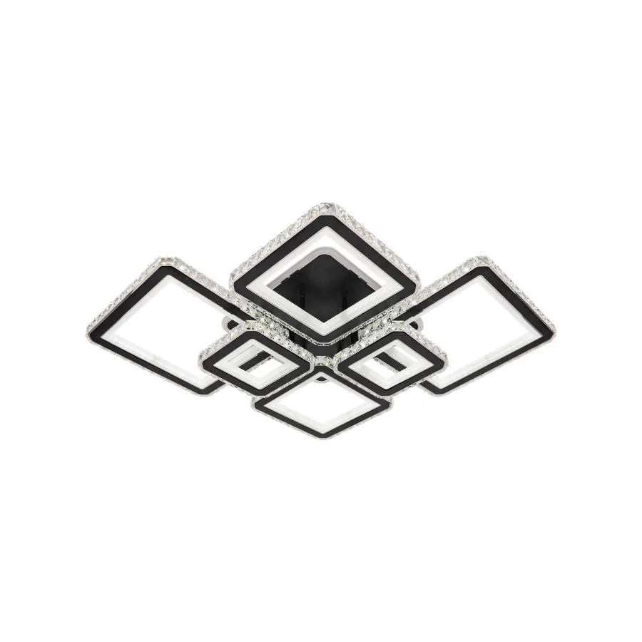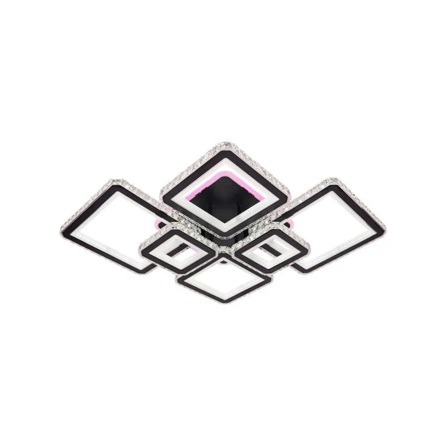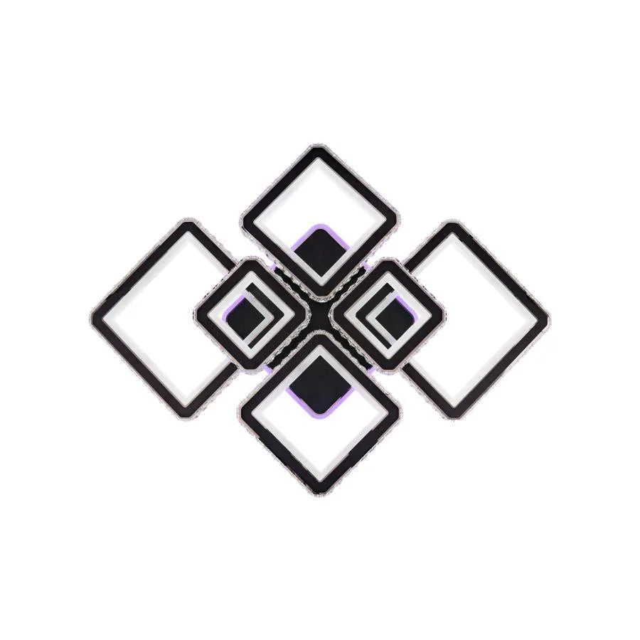LED luster s diaľkovým ovládaním a krištáľovým QUADRIS RGB 330W, 6 štvorcových, studené/teplé/neutrálne svetlo, stmievateľné, čierny
