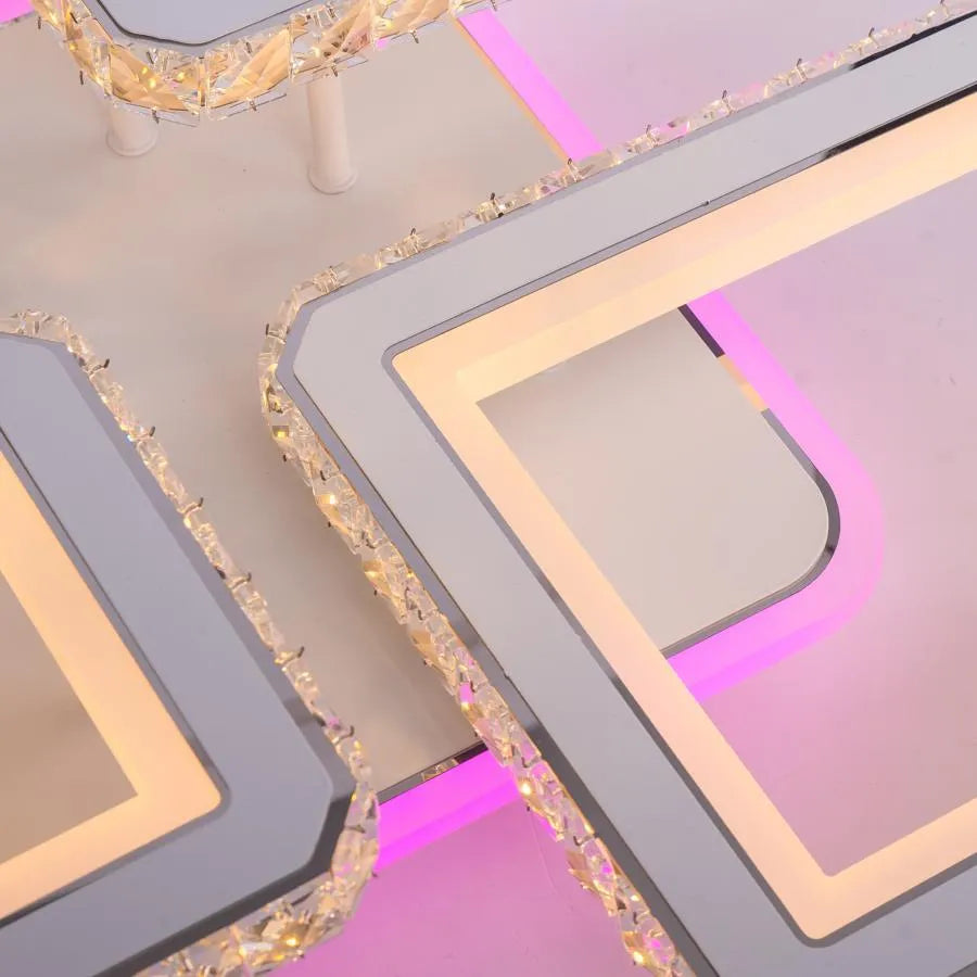 LED luster s diaľkovým ovládaním a krištáľovým QUADRIS RGB, 78W, 4 štvorce, studené/teplé/neutrálne svetlo, stmievateľné, biela
