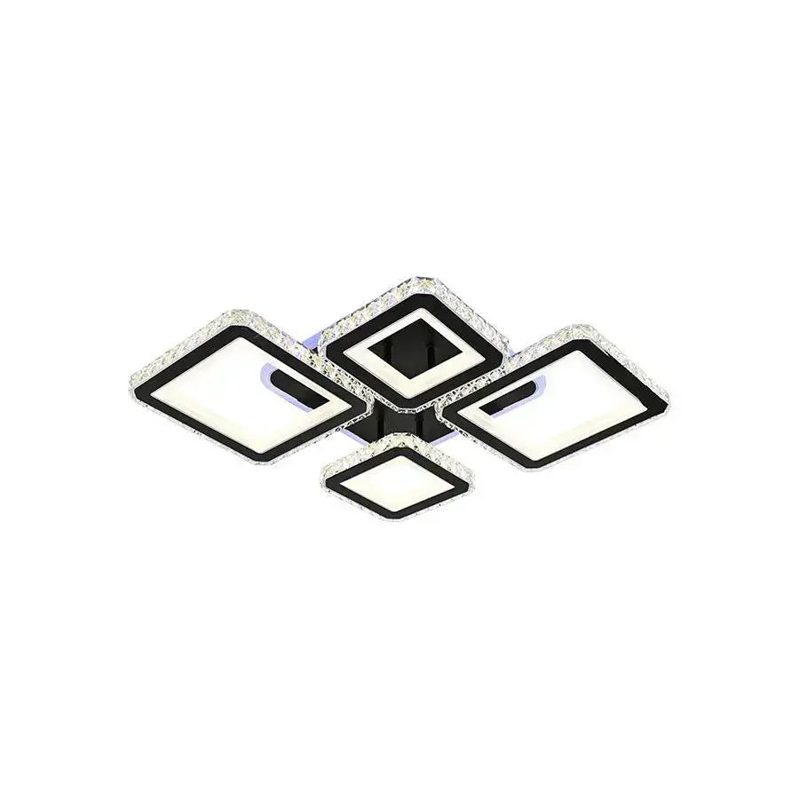 LED luster s diaľkovým ovládaním a krištáľovým QUADRIS RGB 78W, 4 štvorce, studené/teplé/neutrálne svetlo, stmievateľné, čierny