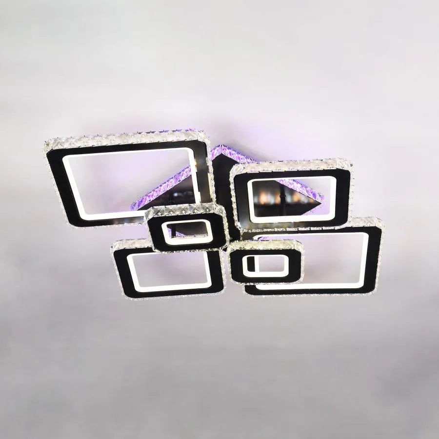 Šesť čiernych štvorcov zdobených kryštálmi vytvára elegantný a sofistikovaný geometrický vzhľad. Kryštály budú odrážať a lámať integrované LED svetlo, čím vytvárajú iskrivý efekt a luxusnú atmosféru. Dodávané diaľkové ovládanie vám umožňuje ovládať nielen teplotu farieb (studená, teplá alebo neutrálna) a intenzitu svetla (stmievateľné), ale aj funkciu RGB, ktorá vám umožňuje vybrať si zo širokej škály farieb na vytvorenie personalizovaných a žiarivých svetelných efektov.