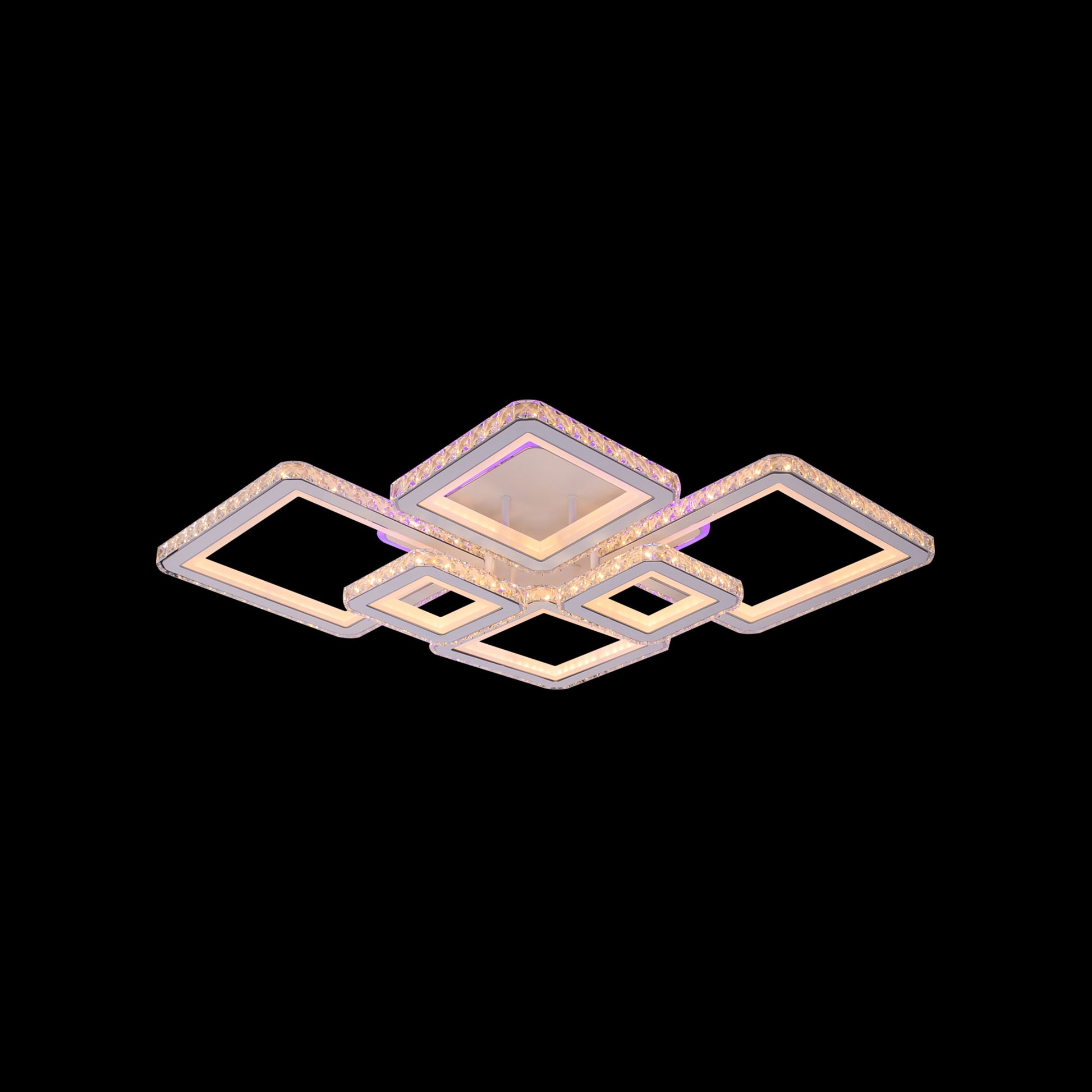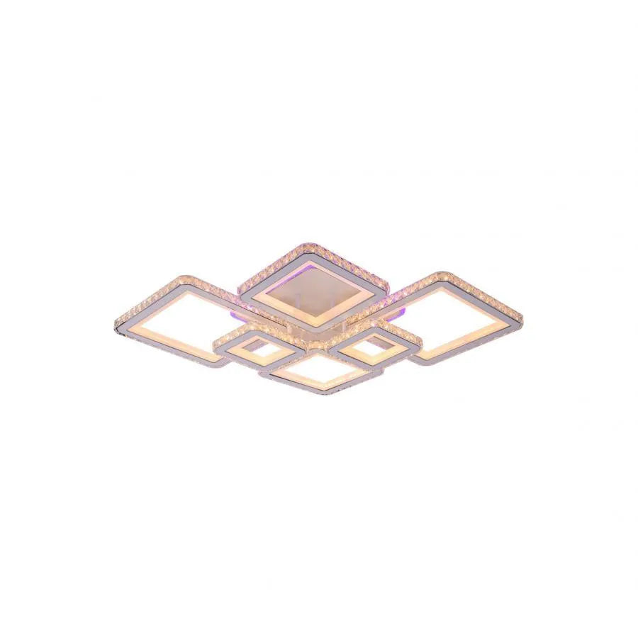 LED luster s diaľkovým ovládaním a kryštálom QUADRIS RGB 170W, 6 štvorcových, studené/teplé/neutrálne svetlo, stmievateľné, biely