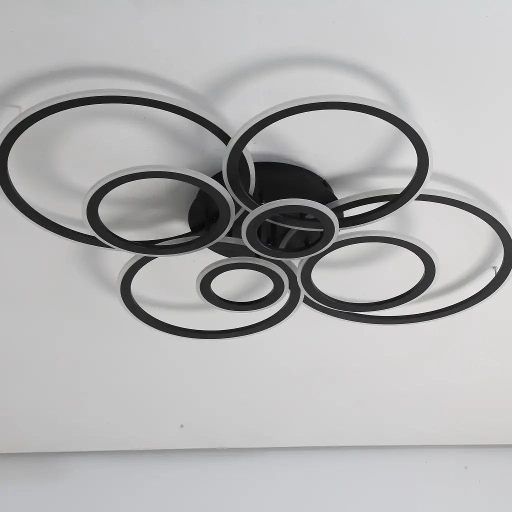 Jeho prepracovaný dizajn s ôsmimi čiernymi kruhmi vytvára podmanivý vizuálny efekt, vďaka čomu je ideálny pre priestranné obývacie izby, jedálne alebo iné priestory, kde je požadovaná kombinácia funkčného osvetlenia a moderného a sofistikovaného dekoratívneho prvku.