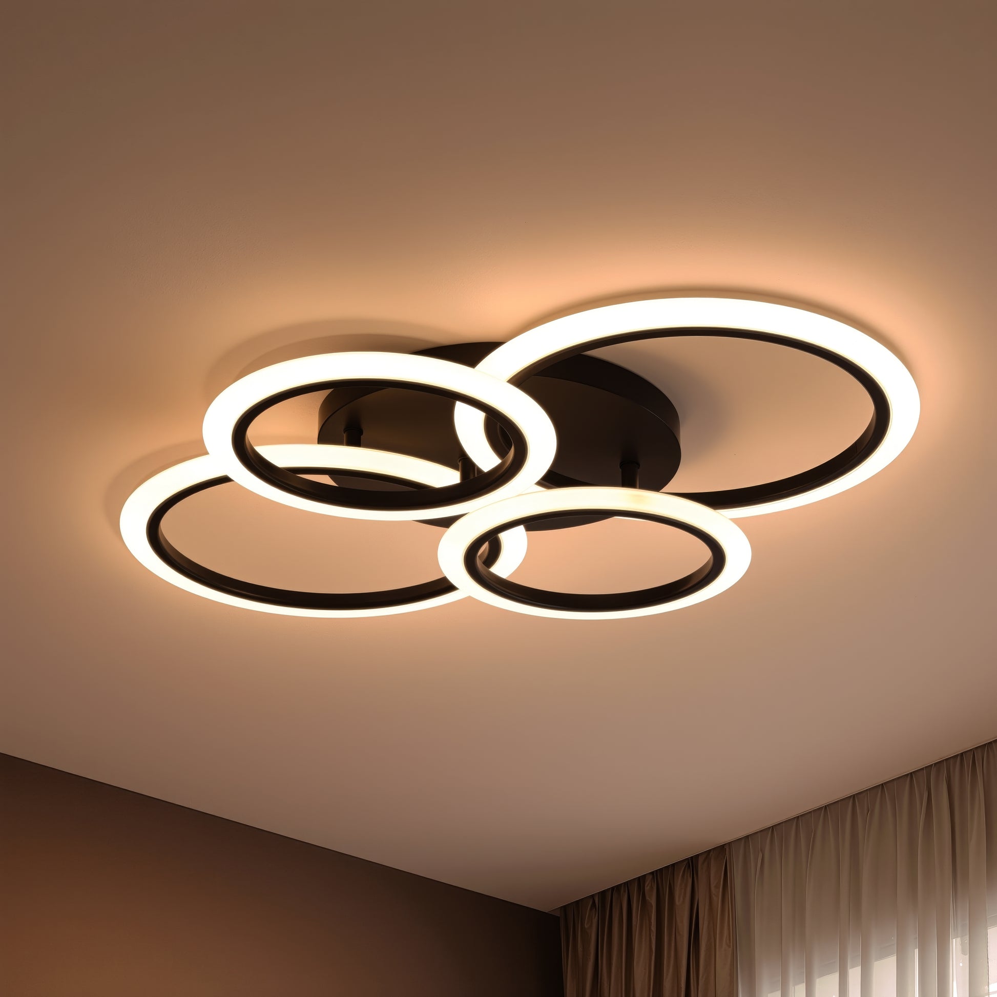 LED luster s diaľkovým ovládaním BETTY 44W, 4 kruhy, studené/teplé/neutrálne svetlo, stmievateľné, čierny