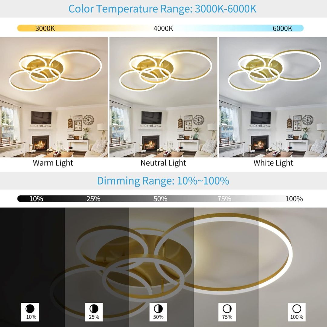 LED luster s diaľkovým ovládaním DARIO, 4 kruhy, 112W, teplé/studené/neutrálne svetlo, stmievateľné, zlaté
