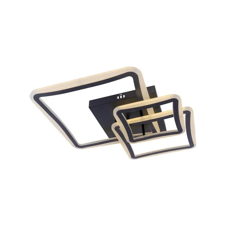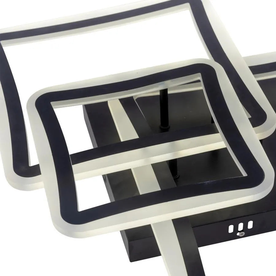 LED luster na diaľkové ovládanie FARYDA je moderný a výkonný svetelný kúsok s dizajnom pozostávajúcim z 3 štylizovaných štvorcov v čiernej farbe. S výkonom 120W ponúka dostatočné a všestranné osvetlenie rôznych priestorov.