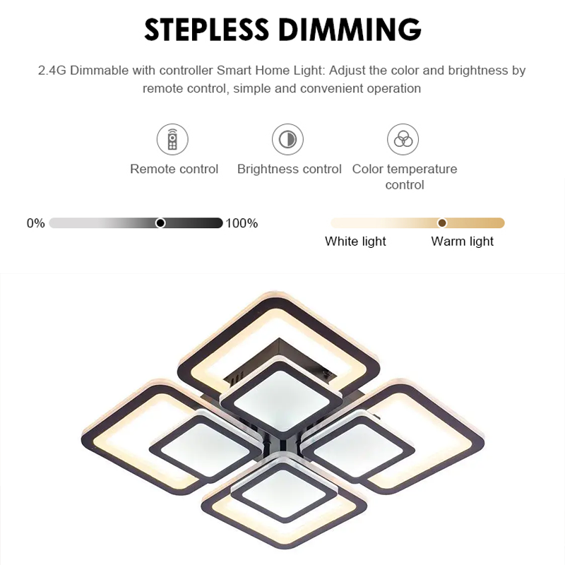 LED luster s diaľkovým ovládaním SUSAN 96W, 4 štvorce, studené/teplé/neutrálne svetlo, stmievateľné, čierny
