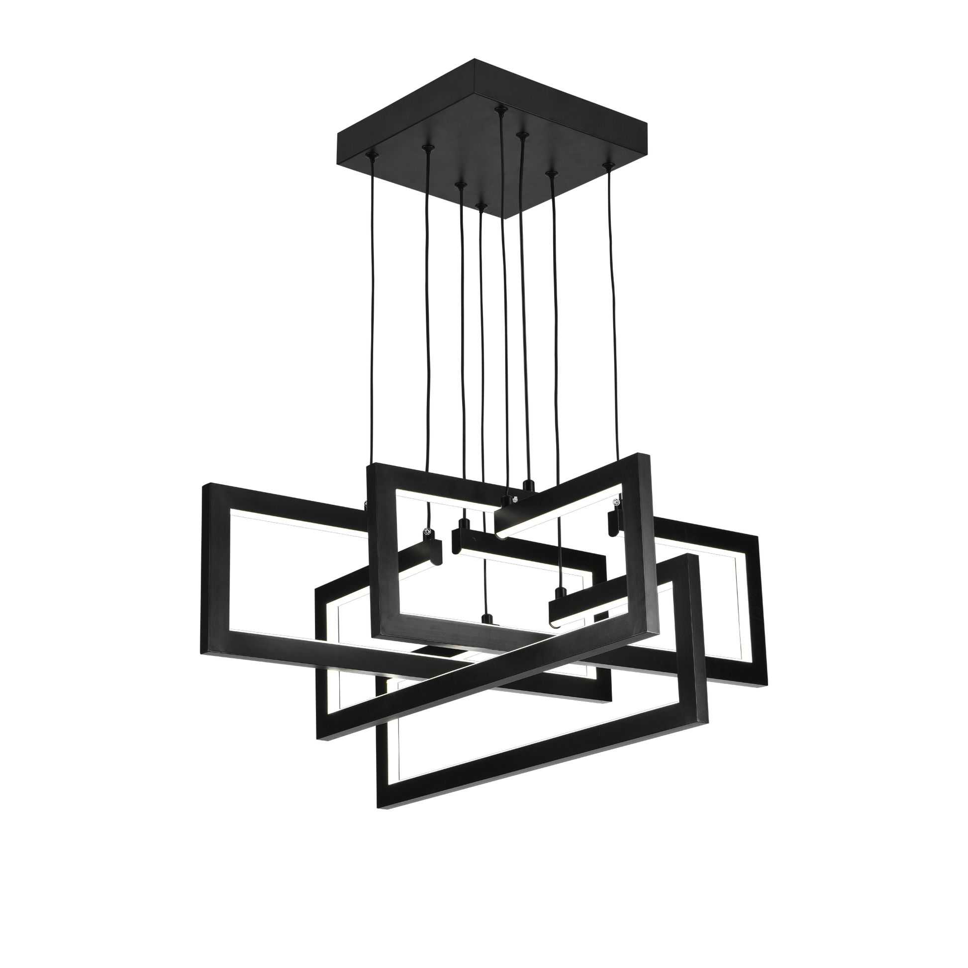 LED luster s diaľkovým ovládaním, Závesný 98W, 4 prvky, Studené/Teplé/Neutrálne svetlo, Stmievateľné, Nastaviteľná výška, Čierny
