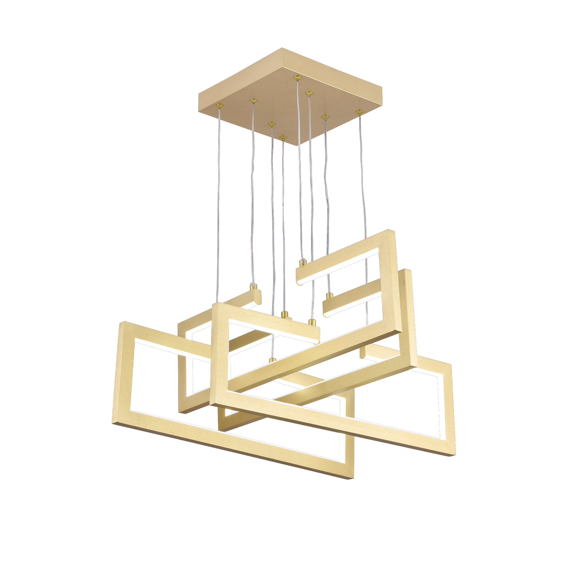 LED luster s diaľkovým ovládaním, Závesný 98W, 4 prvky, Studené/Teplé/Neutrálne svetlo, Stmievateľné, Nastaviteľná výška, Zlatá