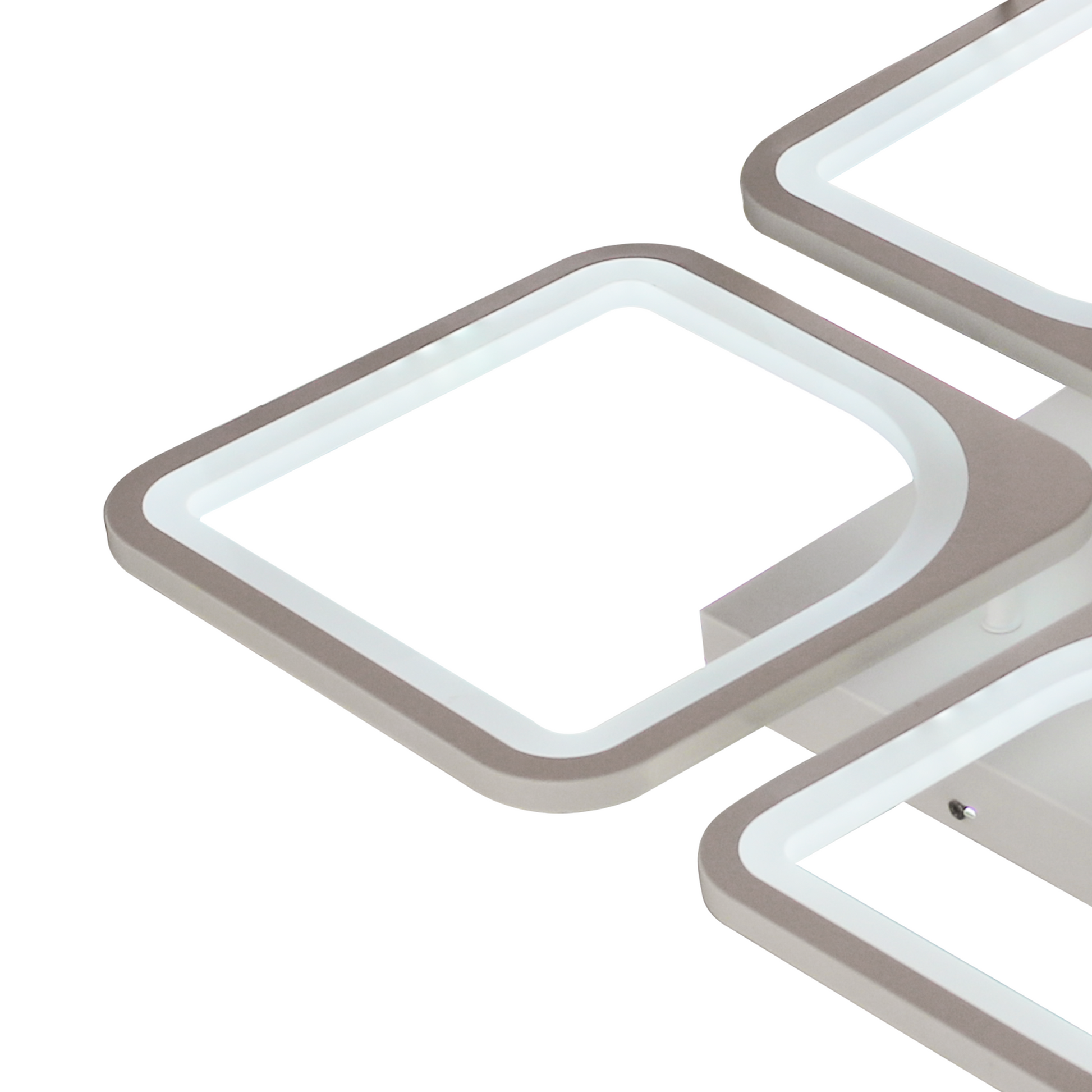 LED luster s diaľkovým ovládaním ZOE je moderná a elegantná možnosť osvetlenia s dizajnom pozostávajúcim z 4 štylizované štvorce, dokončená v bielej farbe. So silou 52 W, ponúka všestranné a efektívne osvetlenie rôznych miestností.