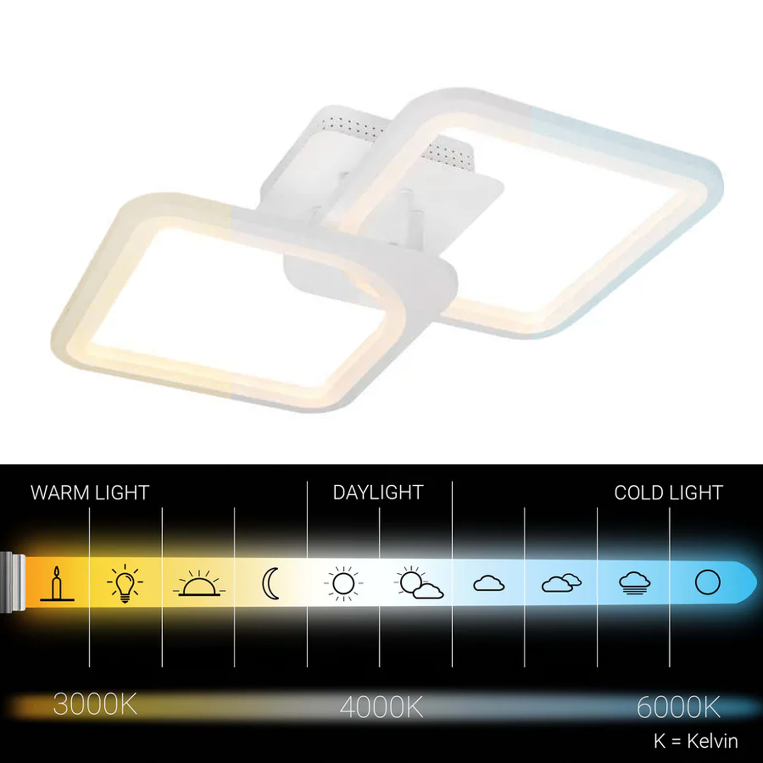LED luster s diaľkovým ovládaním ZOE 69W, 2 štvorce, studené/teplé/neutrálne svetlo, stmievateľné, biela