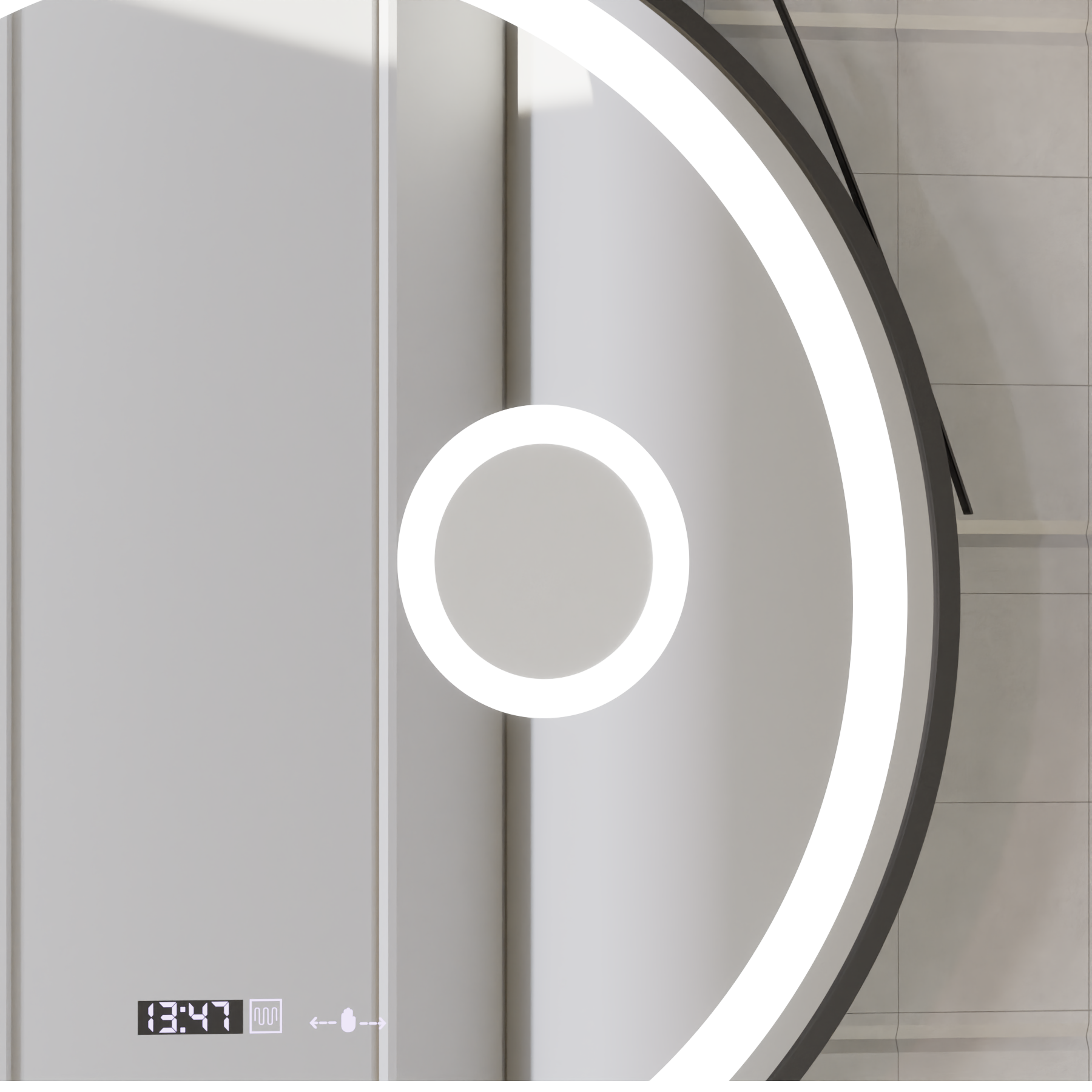 LED okrúhle zrkadlo, 60 cm, Micah Marcello MotionGlow Sensor, Demister System, Hodiny & Teplomer, Kozmetická lupa, Dimabila