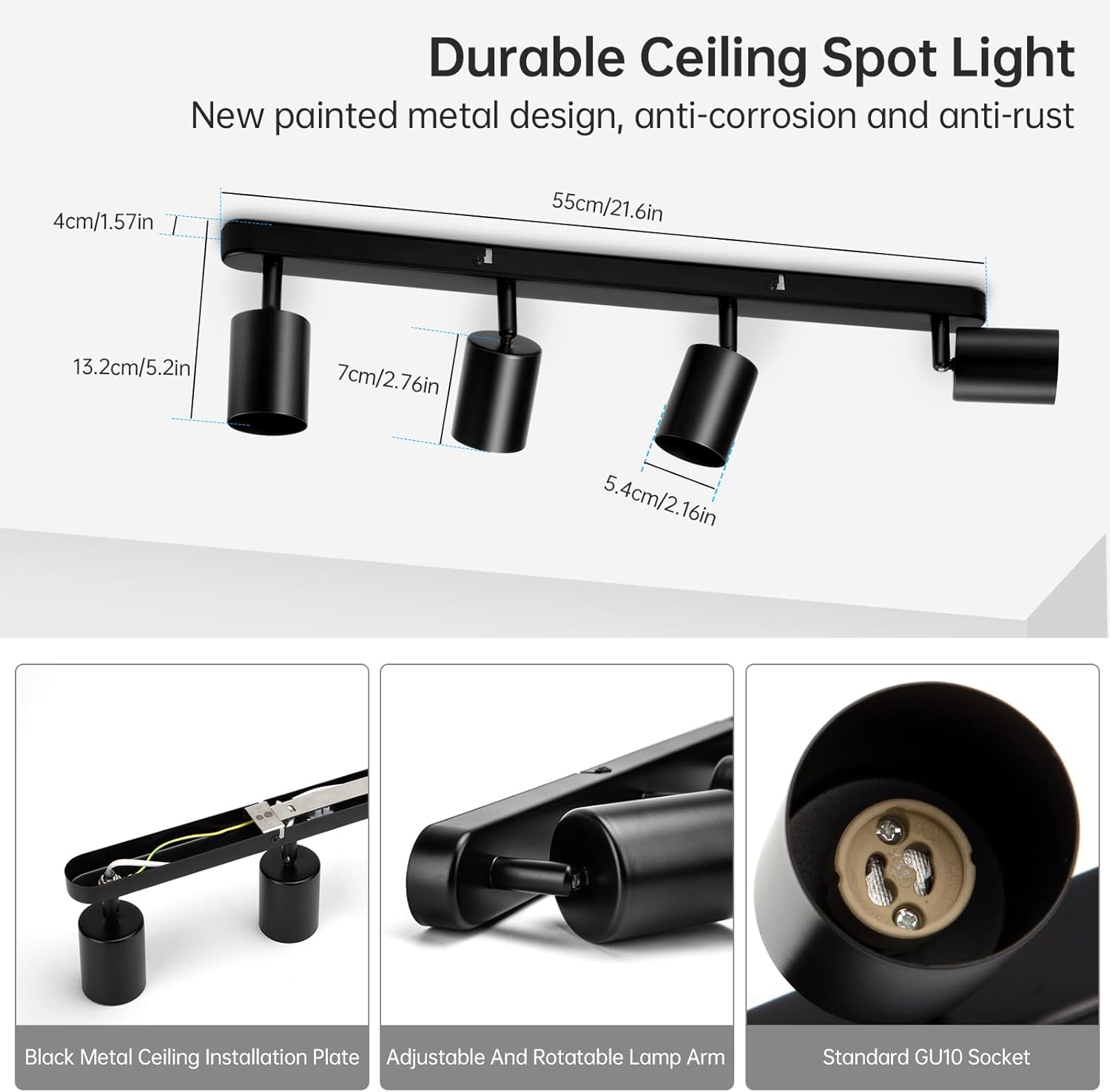 Luster je vybavený 4 svetelnými zdrojmi GU10 a umožňuje presné nasmerovanie svetla a je ideálny pre všeobecné alebo akcentačné osvetlenie v obývacích izbách, kuchyniach, chodbách alebo pracovných priestoroch. Lineárny projektor zaisťuje efektívne a kontrolované rozloženie svetla.