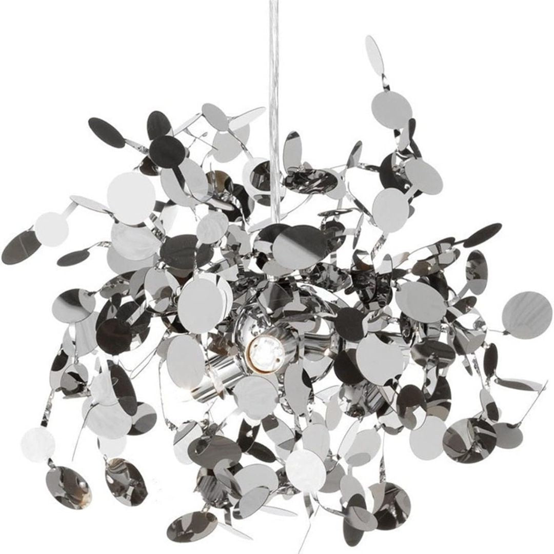 Pútavé závesné svietidlo s guľovým tvarom a detailmi inšpirovanými prírodou. Lesklá chrómová povrchová úprava zvláštnym spôsobom odráža svetlo a dotvára dobre premyslený priestor — či už hovoríme o spálni, kuchyni alebo recepcii. Ideálne pre interiéry, ktoré zdôrazňujú kontrast a vizuálnu štruktúru.