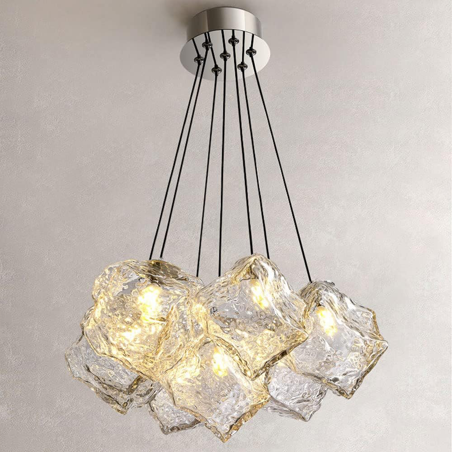 Tento závesný luster ECOLUCE s veľkolepým dizajnom a lesklým chrómovým povrchom je postavený okolo 7 svetelných zdrojov, ktoré sú harmonicky rozmiestnené v tvare zemegule. Sklenené prvky s nepravidelnou textúrou vytvárajú zaujímavú hru odrazov a prinášajú vizuálny impulz do veľkých miestností, ako je obývacia izba alebo jedálenský kút.