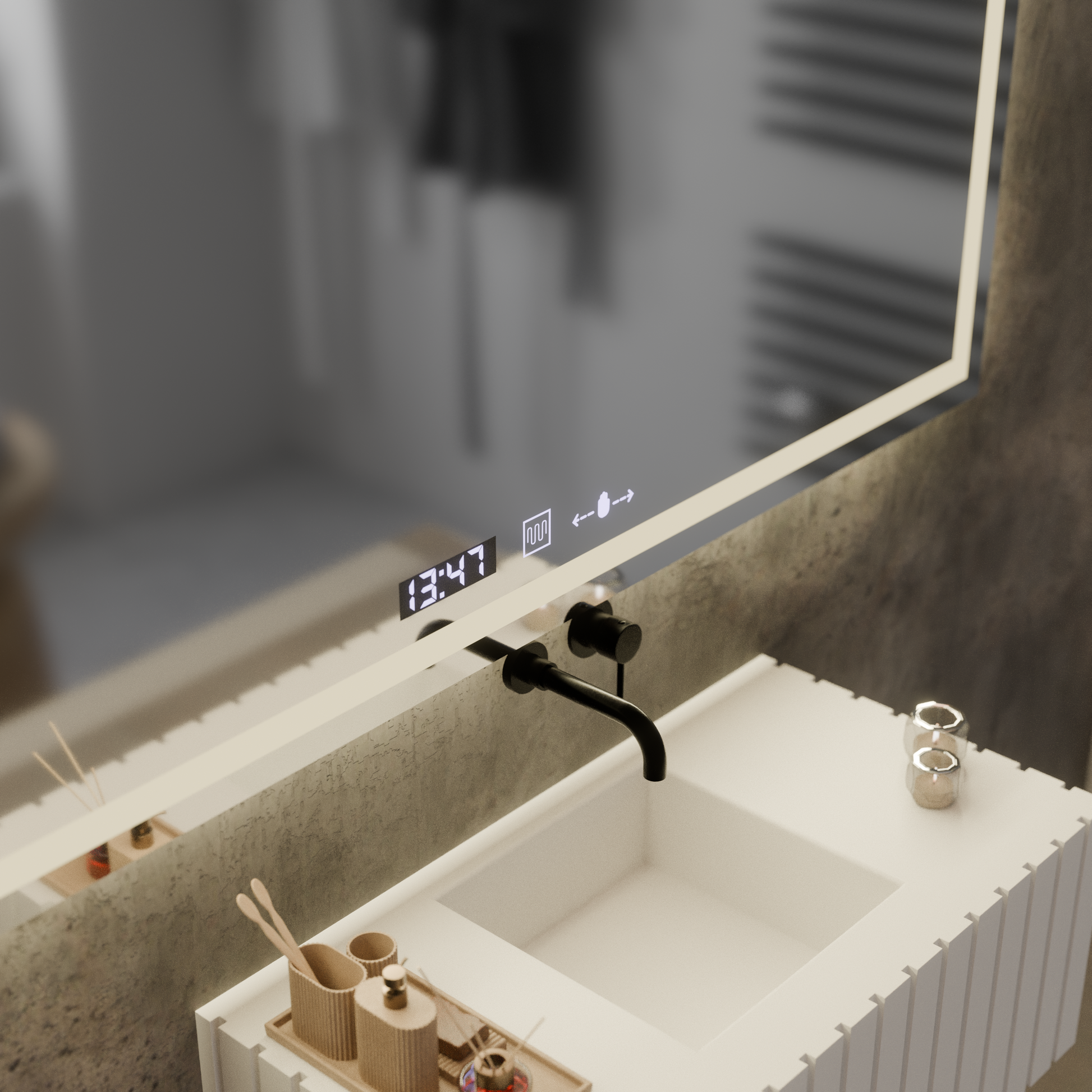 Technológia MotionGlow umožňuje zapnutie svetla bez dotyku a stmievateľné LED osvetlenie prispôsobí sa vašim potrebám – či už sa pripravujete na náročný deň alebo končíte večer v pokoji. Funkcia odhmlievania udržujte povrch vždy čistý digitálne hodiny a okolitý teplomer doplňte zážitok o užitočné informácie priamo v zrkadle.