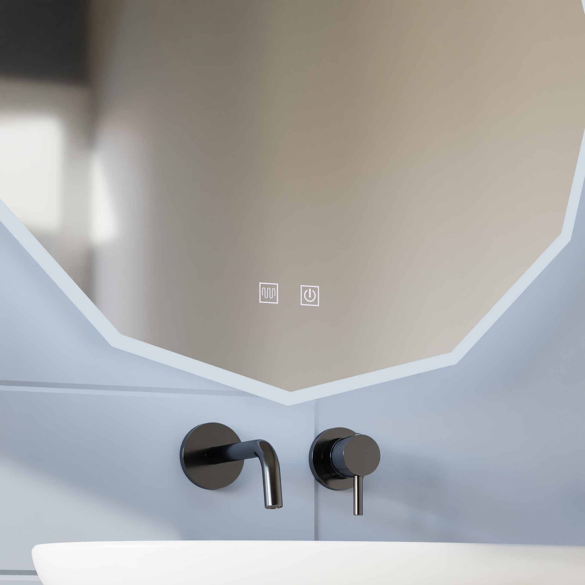 Ovládanie „Touch“ indikuje, že zapnutie/vypnutie svetla a prípadne ďalšie funkcie (ako je intenzita svetla, ak je stmievateľné) sa dosiahnu dotykom konkrétnej oblasti na zrkadle.