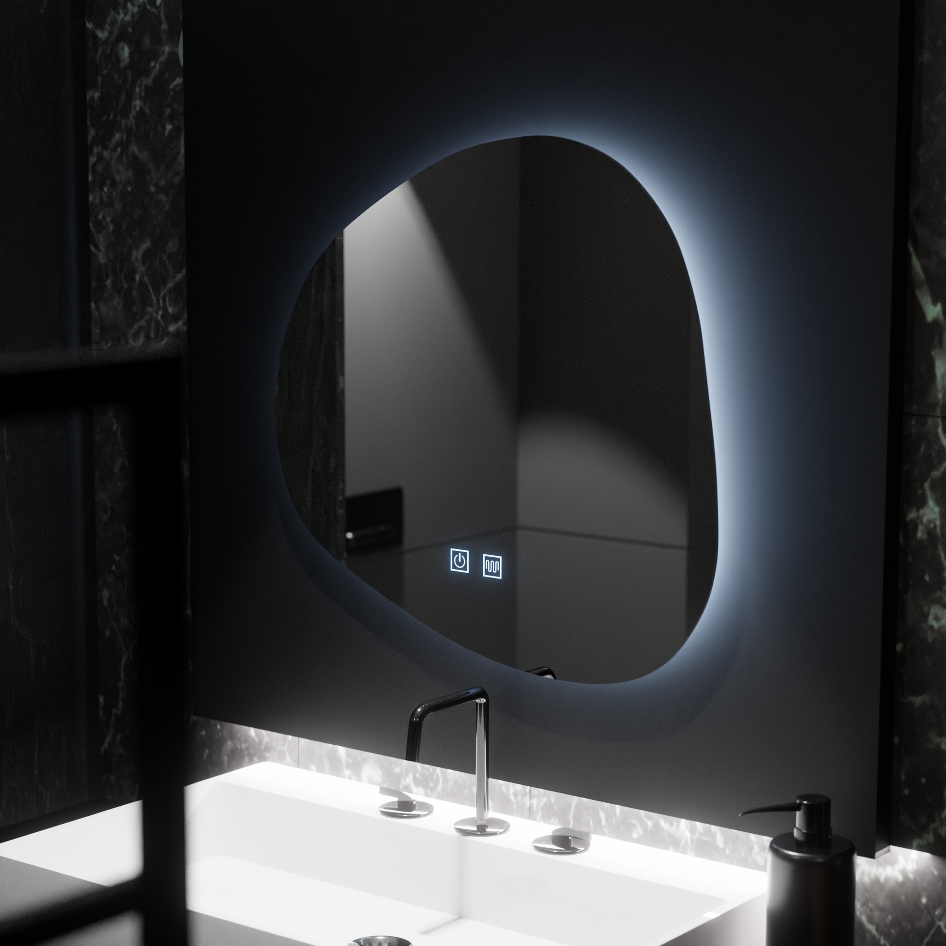 Zrkadlo Duna Touch Organic LED s rozmermi cca 60x60 cm (organický tvar sa môže mierne líšiť od dokonalého štvorca) prináša do vášho priestoru fluidný a prirodzený dizajnový prvok. Na rozdiel od tradičných obdĺžnikových alebo okrúhlych tvarov jej nepravidelný a harmonický obrys dodáva extra punc originality a jemnosti.