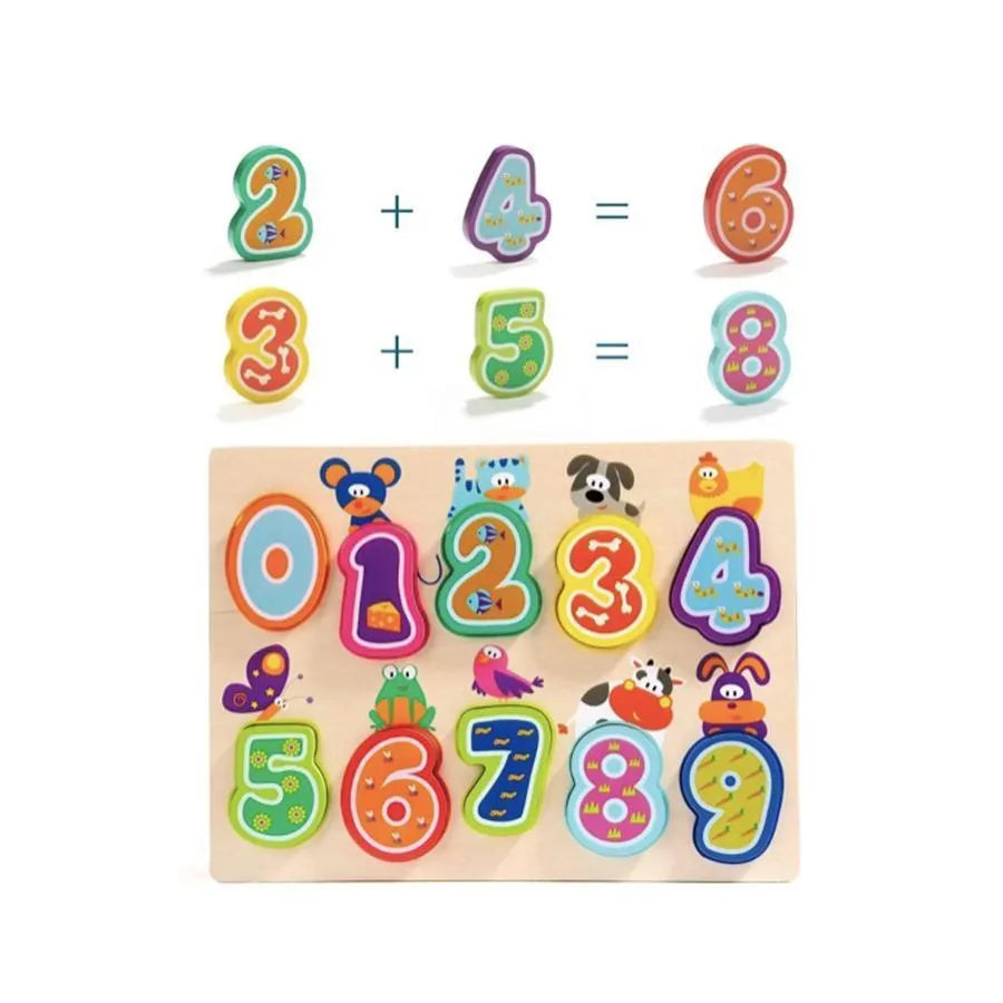 Tabuľka s viacfarebnými zvieratami a číslami, 11 kusov, drevo