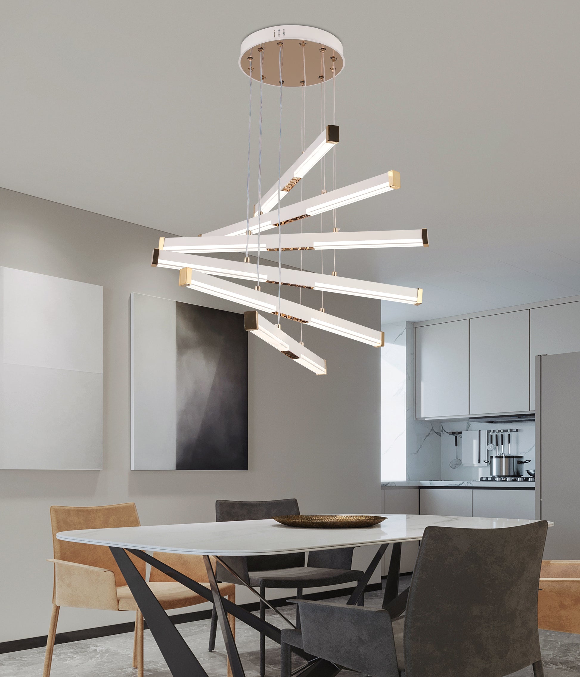 Závesný akrylový LED luster LT183/5WH, 69W, svetlo 3000/4000/6000K, biely, nastaviteľná výška