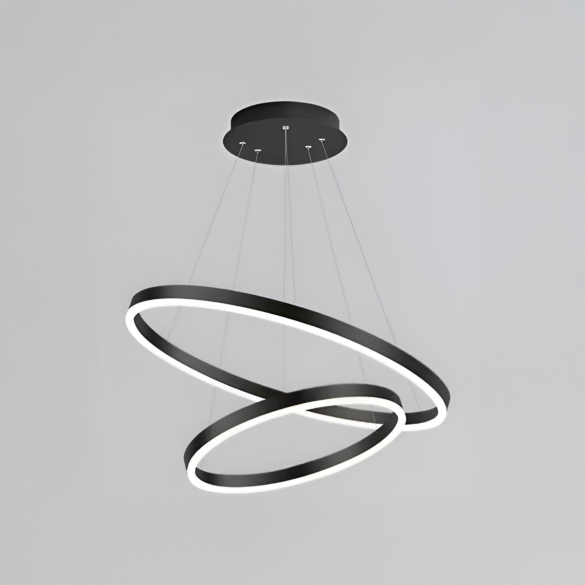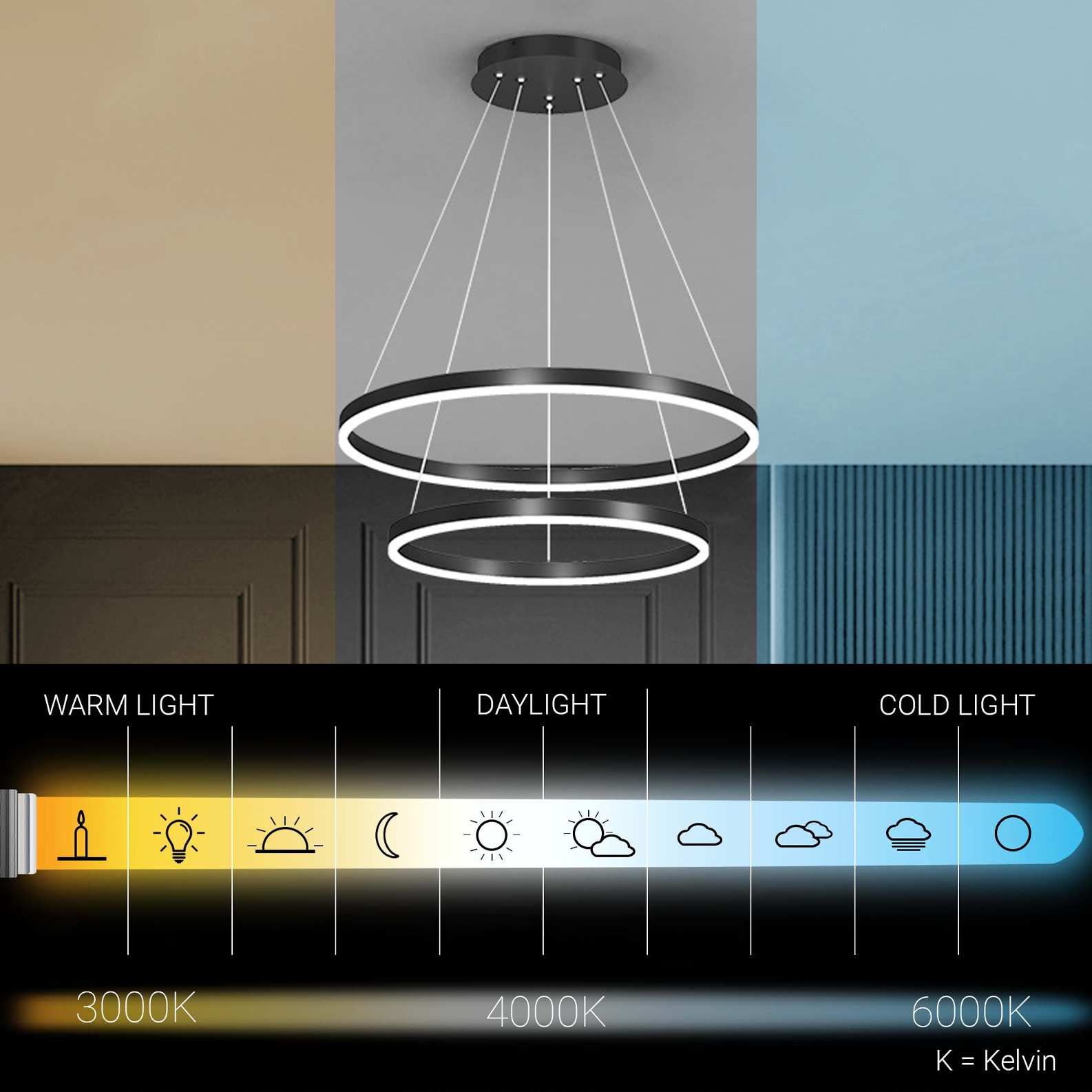 Závesný LED luster s diaľkovým ovládaním CASIANA 41W, 2 kruhy, studené/teplé/neutrálne svetlo, stmievateľné, čierny, výškovo nastaviteľný